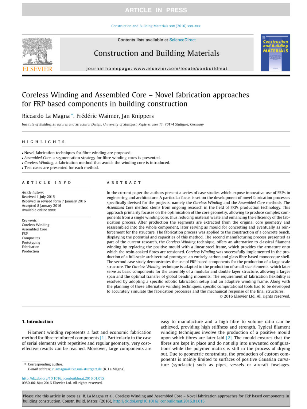 La Magna R., Waimer F., Knippers J.