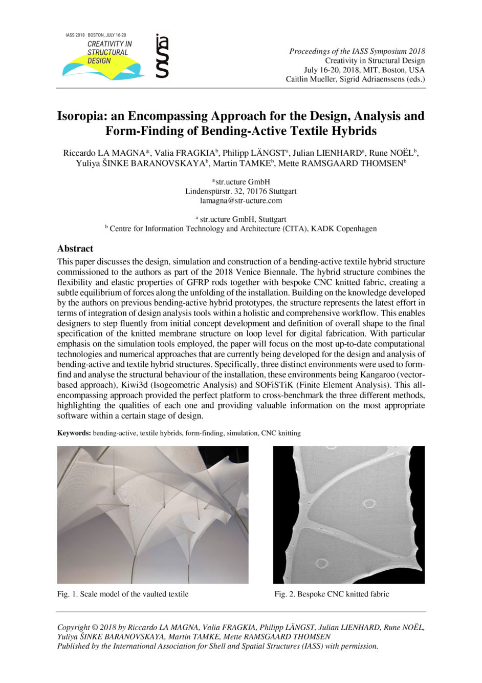 Isoropia: an Encompassing Approach for the Design, Analysis, Form-Finding of Bending-Active Textile Hybrids – Conference Proceeding