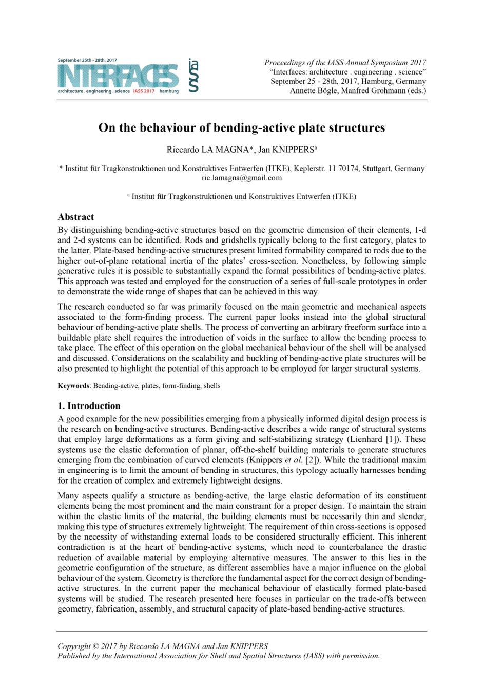 On the behaviour of bending-active plate structures – Conference Proceeding